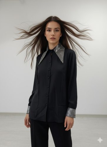 Kadın uzun kollu yaka ve manşet detay gömlek