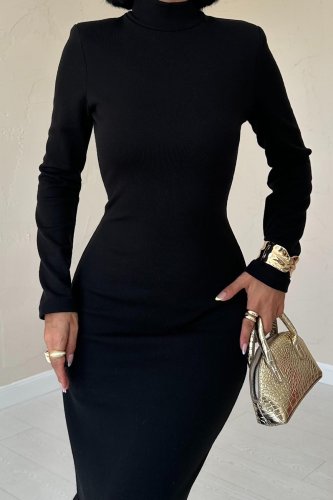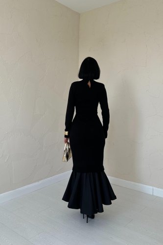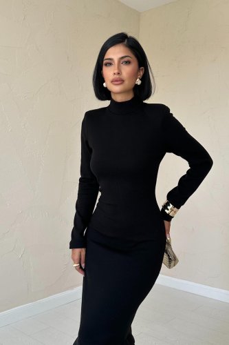 Siyah Eteği Garnili Triko Elbise