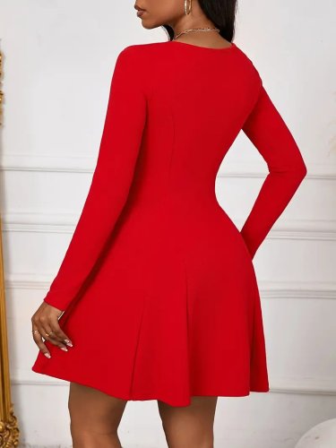 • Kadın uzun kollu kare yakalı mini ithal krep elbise