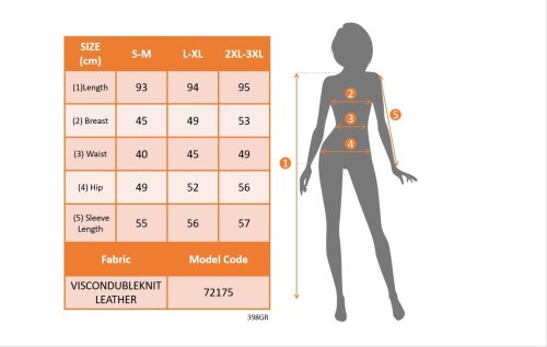 • Modelin Ölçüleri: Boy:165, Kilo:55, Göğüs:90, Bel:72, Kalça: 100