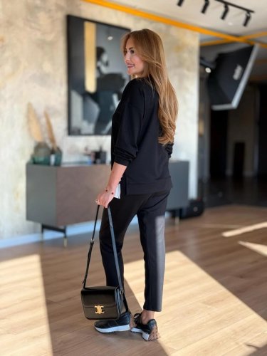 • Kadın uzun kollu bisiklet yaka ribana detay sweat ve pantolon ikili takım