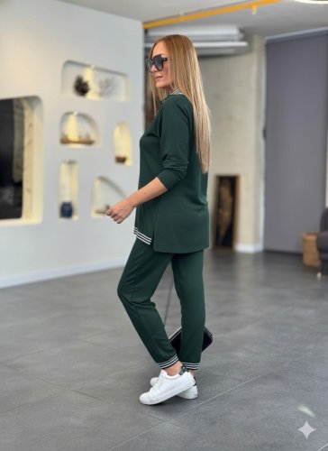• Kadın uzun kollu fermuarlı şerit detay desenli alt üst ikili viskon iki iplik takım