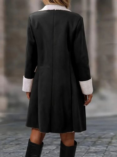 • Kadın uzun kollu yakalı düğmeli süet mini manto