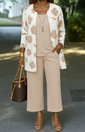 Kadın uzun kollu önü açık modal ceket kolsuz viskon iki iplik bluz ve pantolon üçlü takım