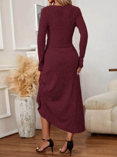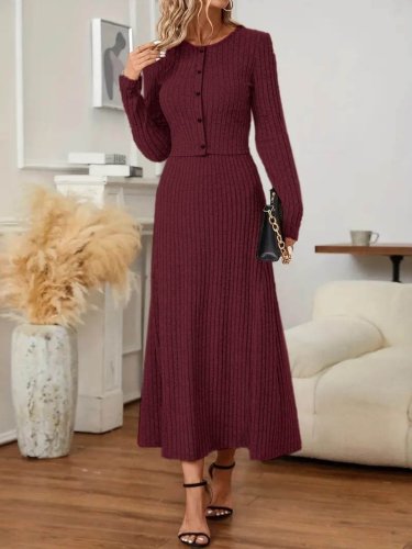 • Kadın uzun kollu önden düğmeli bluz ve yüksek bel A kesim uzun etek şardonlu kaşkorse ikili takım