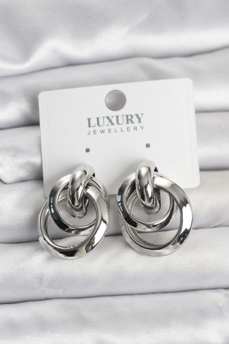 Pirinç Sarmal Gümüş Renk Kadın Küpe