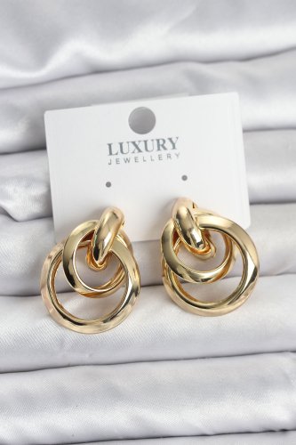 Gold Renk Halka Model Pirinç Kadın Küpe