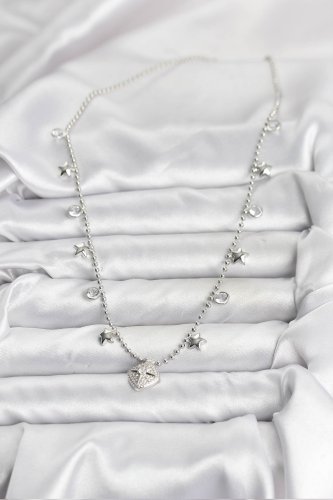 • Pirinç Gümüş Renk Zirkon Taşlı Kutup Yıldızı Model Kadın Kolye